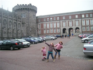 After lunch we went up to the Dublin Castle. We started at the Gardens. They are public gardens in the middle of the city but they are obscured by the castle – so they are very quiet. The girls enjoyed running around the labyrinth-like patterns in the lawn. (See the video below.)