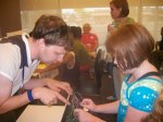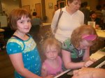 Today the girls, grandma and I went to Rondo Library for DigiDaze, a community computer fair of sorts. The girls got to see a few fun things the most fun was creating tiny movies. There was a camera that would take freeze frame shots and turn it into a video. I have their videos below. They also got to play digital music by playing the circuits inside an electric keyboard. I had heard digital music before but hadn’t known really how it was played. Connecting circuits is sort of the basest way to create the music.