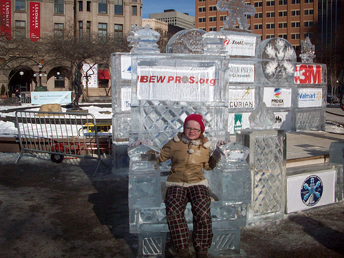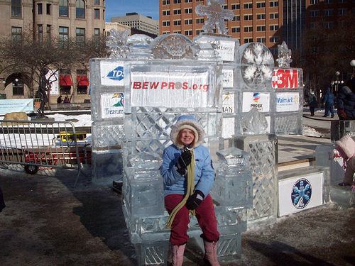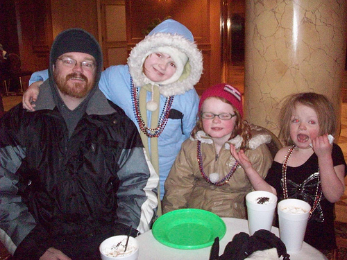 The girls got a bunch of necklaces. The other good thing about a sub-zero parade is that you only have to show your nose to get a necklace. I’m not saying it always worth getting so undressed in public – but you know kids these days. They’ll show their noses to anyone in any temperature.