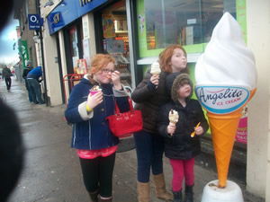 Last weekend, when Patrick and I were at the Dark Dining event, Lily and Kate went to see the All Ireland Talent Show. It’s a kinder, gentler American Idol. The girls got tickets through their friends Ailbhe and Cait. The show starts at 6:30 on Sunday nights. The girls had to be at the studio at 4:00 – but they had free cookies and drinks at the studio. They were surprised at how small the studio was.