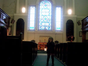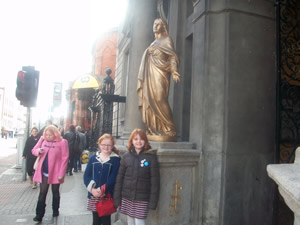 First we went to Whitefriars, where they have bones from St Valentine. We wanted to see this before Valentine’s Day but that didn’t work out. It was fun to see them today. The church is very ornate. They seem to have relics (our word of the day) from lots of saints and plenty of candles to light. Whenever Irish Grandma picks up Aine from school, they go to the church at the school to light candles; so Aine was *very* into lighting candles at Whitefriar.