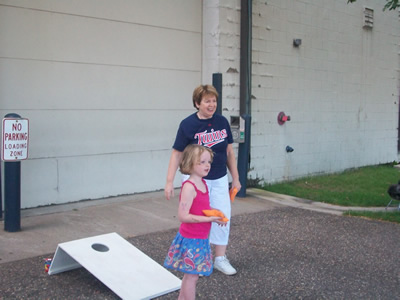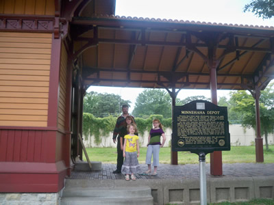 There was a great Groupon on the multi-people bikes at Minnehaha – so we went. I kind of forgot that I don’t really like bikes when I went for this – but I was quickly reminded once we got going. It’s hard to pedal a bike with 5 people on it – and Patrick’s a good biker. But it was beautiful day. And there was a fun historical recreation at one of the houses around Minnehaha. OK, recreation might be over stating it – but the girls got to play some old fashioned games. The Historical Society does a great job on stuff like that.