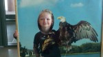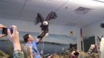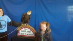 We got to watch them feed an eagle. That was gross but cool. The eagle got to choose between rabbit meat and rat. She went for rabbit meet. I think the rat would have been grosser to see. The rabbit looked like raw meat; the rat was recognizable as a rat. Lily and Patrick got to hold a falcon, wearing the falconer’s glove.