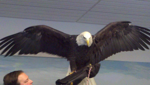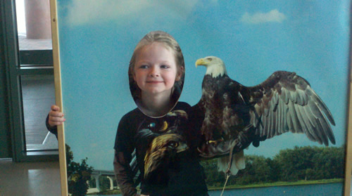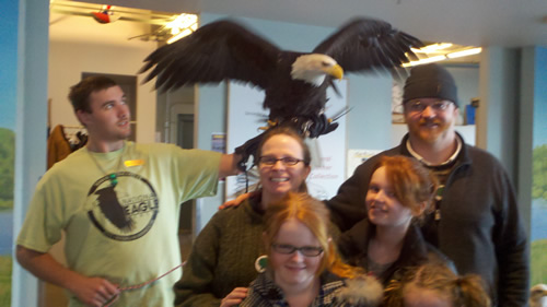 Five eagles reside at the center. Each has been injured in some way. Most were nurtured back to health by the Raptor Center but were not well enough to be released to the wild. Lily and Aine got pictures taken with Angela the Eagle. Then (because we knew the founder) we got a great picture with the whole family and the eagle with wings spread. So that was cool.