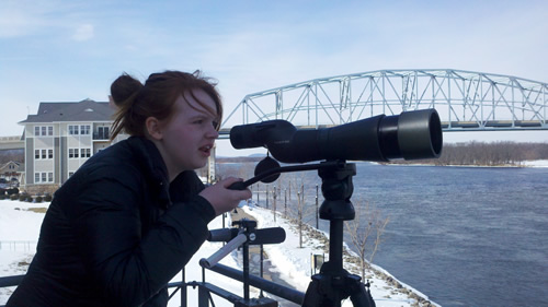 The girls and Patrick are off this week for Spring Break so we’re taking a mini-vacation in Wabasha, Minnesota. There are two big draws in Wabasha. First Grumpy Old Men was supposedly filmed here. Turned out that not a lot was filmed here, but that was OK. (Part of Grumpy Old Men was filmed at the Half Tim Rec in St Paul, where I worked for years so I felt like I had that covered anyways.) The second and more important draw is the National Eagle Center.