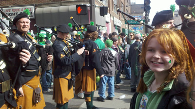 St Patrick’s Day was beautiful this week. It was chilly – but chilly in a year where anything but cold and snowing was good. We all went and marched in the parade. We marched with the Irish Gazette, which is always fun. We caught the older girls trying to appear as parade watched for a while, in the hopes that they would get some candy or necklaces. Aine on the other hand was happy to give out newspapers throughout the march.