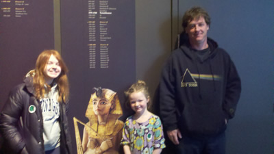 During the spring break we went to see the King Tut Exhibit at the Science Museum with Uncle Billy. It was Way better than the Dead Sea Scrolls. Nearly everything was an original, not “just like the one” used in ancient times. We watched the Omni movie too and it was a particularly good one. It recreated the discovery of the tomb.
