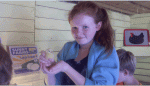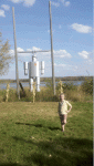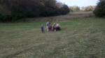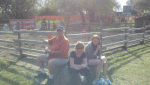 We get to see (and hold!) baby chicks and bunnies. You know how grandpa and I are suckers for cute and fluffy! You get to ride in a go-cart kind of thing down a hill. Really I could spend my whole day doing that. Then there are contests – like sack races – ask me who the winner was. You can swing on the hay bale thing – if you’re under 14. And best of all is the pumpkin trebuchet. We love seeing the pumpkin catapult into the lake. Love to hear the explanation of how it works each year.