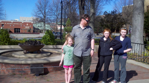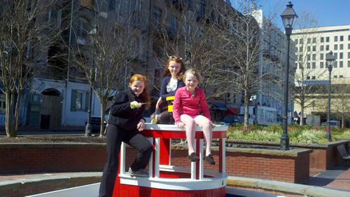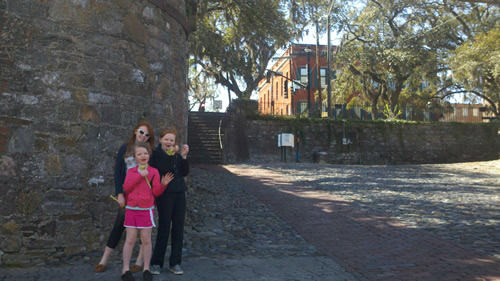 We woke up in suburban Savannah. We all went to have breakfast in Savannah – then Grandpa headed back to the hotel while the girls and I scoped out Svannah. We checked out the City Market, where there are touristy shops. The shops were cute, if you’re in shopping. Then we walked along the waterfront. Savannah is a place I’d like to visit again – because even though we probably spent more time checking out the city than we spent anywhere else on the drive down, I feel like I didn’t get to see too much.