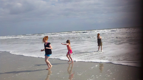We stopped in Jacksonville mostly because Grandpa had a car wash he wanted to check out. But a very big bonus was the beach. When you’re from the Midwest you think all of Florida is the beach – but Orlando isn’t on the beach. And the kids have never been on a US beach. So even though it wasn’t the warmest day – it was a heck of a lot warmer than Bray Head.