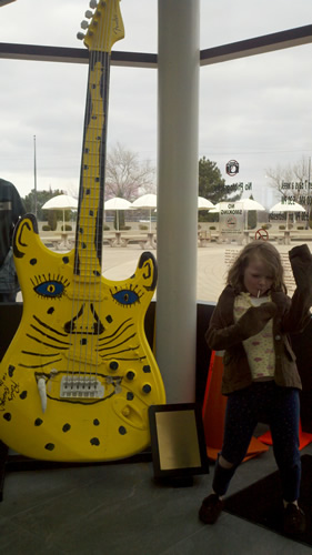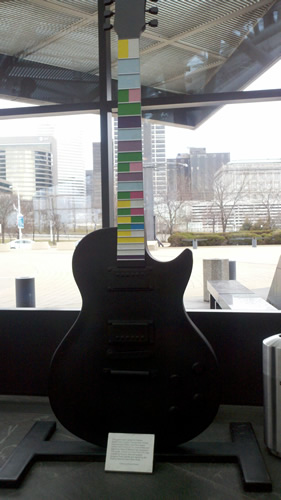 We had lunch at the Great Lakes Brewing Company. It came recommended and was good – although a little loud. Then we headed to the Rock & Roll Museum.I suspect that Grandpa and I may have enjoyed the Museum more than the girls – at least one was a little crushed not to find Justin Bieber anywhere. Sadly you can’t take pictures through most of the museum – but here are some of out highlights (in no particular order):