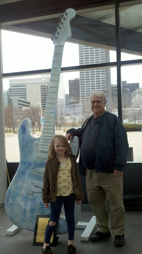 The day started about a week ago. We started in Chicago. Drove through Indiana, stopped in Cleveland Ohio for lunch and a tour of the Rock & Roll Hall of Fame and now we’re sleepy in Pittsburgh. That’s three new states that the girls and I have never visited. (Grandpa has – in fact he mention that the last time he drove this path was September 12, 2001; he was stuck in DC for 9/11 and decided to just start driving West to get home.)