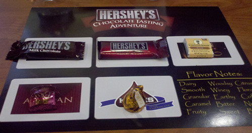 We took the free tour of the history of chocolate, which was cheesy but fun – and a perfect filler while we waited for our next activity – a chocolate tasting class. I wasn’t sure what I was expecting, but I wasn’t expecting to learn as much. We learned that it takes about 10 days to make a regular Hershey bar – from field to wrapper. The darker chocolate and higher quality bars take longer. The Bliss chocolate takes 30 days to make. I was surprised how much I liked the darker chocolate when I took the time to taste it. Although really – white chocolate is still much better – to me.
