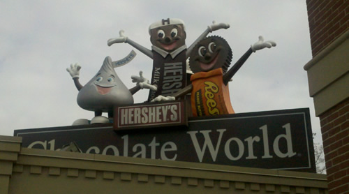 Then from Pittsburgh to Hershey PA. The World of Chocolate was fun. We started by making our personalized candy bars. We got to choose our flavors and design our labels. I realize that I was in the minority in choosing white chocolate (turns our white chocolate really isn’t chocolate – but it’s still my fave). It was fun to get an idea of the process of making a candy bar.