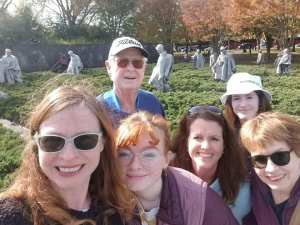 Next up – the Lincoln Memorial – with a special stop at the “I have a Dream” memento on the steps where Martin Luther King Jr stood to give that speech. We learned that 37 people fall down the stairs to the Memorial each day. Pleased to report that we weren’t part of that statistic – on this trip. We checked out the Korean War Memorial and Vietnam Memorial. I like how these memorials recognize the personal sacrifice in a way that the WWII doesn’t. I think in the 1940s there may have been greater internal connection between individual and state (or nation), I’m not sure that’s there in the same way. Subsequently, featuring the soldiers coming out of the woods (Korean) or names of the deceased soldiers (Vietnam) is a nice touch back to the soldier as individual.