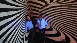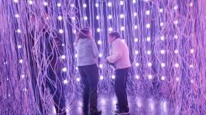 There are exhibits or works from several artists. They all play with perspective, movement and dimensions. The most famous, I suspect is the Infinity Mirror Room by Japanese artist Yayoi Kusama. We also liked the perspective room – you can see above where I tower over Aine and Grandma. Another fun one, less photogenic is the tin cans and the telephone wires. You put the can up to the wires until you hear something. Very cool.