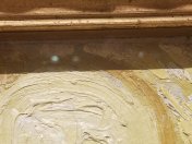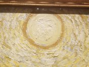 Kate knew about the discovery of Vincent Van Gogh’s fingerprint accidentally left on Mia’s Olive Trees. You can see where it must be below. It’s near the top right edge of the sun. Unfortunately the frame around the picture shades that area but that won’t stop us from pretending to see it.
