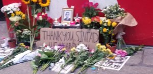 We all pulled it together to walk to the City Center for dinner. It was fun to see Temple Bar on a Friday night. It was fun not to feel obliged to duck into any of the pubs of Irish music and hen parties. We ran across a nice memorial for Sinead O’Connor.