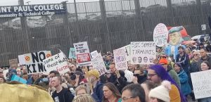 Today 80,000 people attended the No Kings Day of Defiance TC event in St. Paul. We met at St Paul College, marched half a mile to the Capitol and rallied for more than two hours. A team of folks have been planning for about six weeks including Women’s March MN, Indivisible Twin Cities, MN 50501 and AFL-CIO of Minnesota. Today was not the event we planned. Today was the march we needed.
