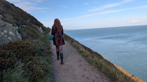 The last time Kate and I went to Howth, she was sick and it was bitterly cold. Today was beautiful! The sun shines for us today – as it did for Molly Bloom on 16 years before Bloomsday (June 16, 1904) in Ulysses by James Joyce. In her honor we climbed to Howth Head. Howth is the northern most point of the Dublin Bay; when the girls were little, we lived nearer the southern end of the Dublin Bay. So, Howth always feels like a rare treat. Climbing the hill is steep (by that I mean scary!); we climbed about as far as we thought we could. The journey was made more ominous when we saw a rat tail as big as a pencil until the rubbish bin at the start of the trail. But the views were worth it!