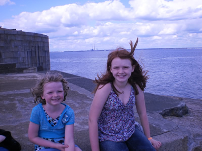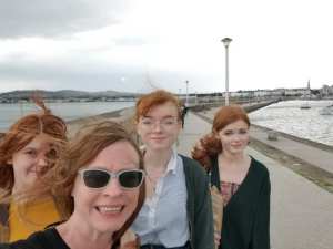 We took the DART out to Dun Laoghaire and walked down the pier as we have done about a hundred times before. Although Aine was the only one who wanted a 99 (ice cream cone) so I knew something was different. We didn’t see any seals, which was a great disappointment to me but Lily and I did see a porpoise (or dolphin – hard to tell when all we really saw was the dorsal fin). The pier was busy. It was super sunny for part of the walk, then a big rain and wind storm blew through, then sunny. So pretty much the same as usual.