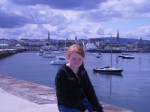Dun Laoghaire is on the South Side of the Dublin Bay. When the girls were young we lived not too far from there. We often walked the Dun Laoghaire pier looking for seals and porpoises. SO that’s what Kate and I did today. There’s not much to tell because it’s just very nostalgic for us. BUT we did see a seal! You can never be sure you will. On a sunny day you might see them sun bathing but today was overcast, but warm (60 degrees maybe), not rainy and very windy. Somehow Kate looks better in the wind than I do. Of course, she looked better in the calm too.