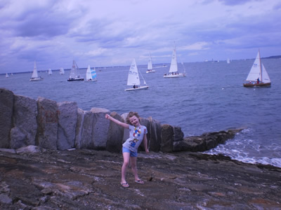 We have been to the Dun Laoghaire Regatta twice now. Last time we were pretty excited and weren’t sure what we were going to see. Our expectations were more tempered this year. We weren’t expecting much so it was a lot better. Really Lily, Aine and I were just looking for something fun and easy – so we walked up the East Pier – but we walked up the rough part of the tame pier. Our timing was good – most of the sailboats were just heading out. It is kind of fun to see the harbor full of sailboats.