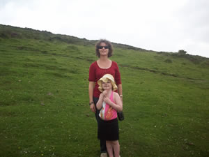 Along the walk we saw cows and sheep. Julie was so helpful getting Aine up the mountain. Lily was super helpful about helping Aine down the mountain. We saw one guy run up and down mountain. We expect to see him on a professional soccer team soon!