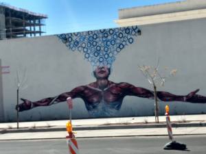 After our hike today we had lunch near downtown Phoenix at Roosevelt Row. It’s an areas with a lot of murals and street art. Grandpa noticed that the sidewalk walk built in 2017. Often a sign of sprucing up an area. The community has a university-hipster feel. There’s a lot of building happening. But there are some boarded up buildings and we saw a fire truck come support a person who clearly had been outside too long – living outside I mean.