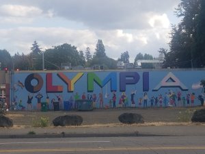So far, Olympia seems like a nice town. We walked around in the rain for an hour, bought some fancy consignment items and stopped for early dinner. Then the sun came out and we walked around some more – from the waterfront to the Capitol and back. (Don’t tell Aine but I walked 10+ miles today, which means she did too!)