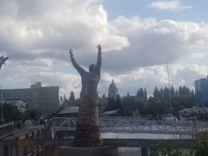 Eventually we made it to Olympia. First site was a tiny abortion rights rally – maybe 12 people. But I stopped and took a pictured. Gotta unite for reproductive rights!